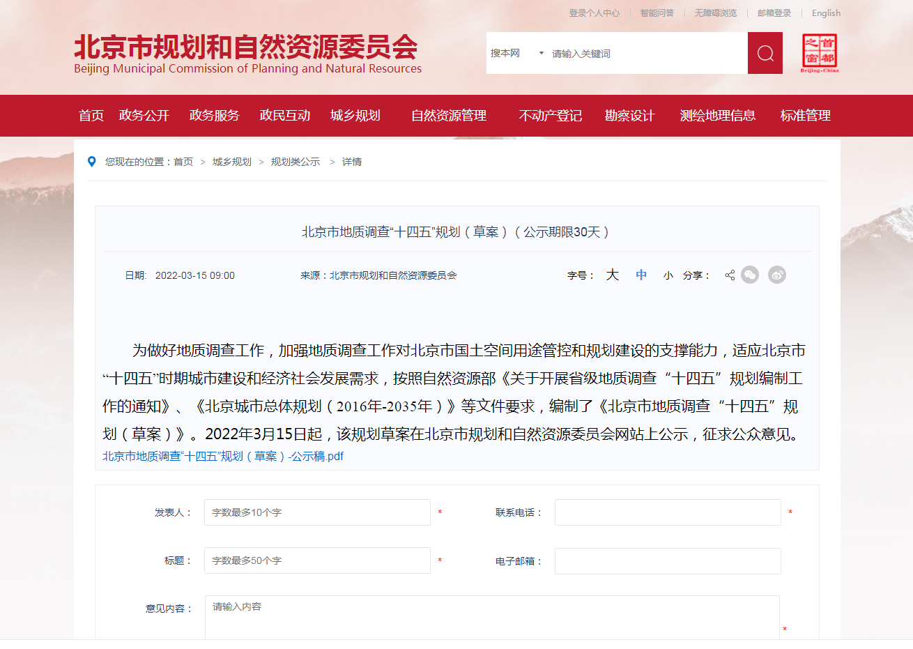 地大熱能地熱+多能互補網訊:《北京市地質調查“十四五”規劃(2021—2025年)(草案)》(以下簡稱《草案》)3月15日起在市規劃自然資源委網站公示,聽取公眾意見,公示期30天?!?a href="http://m.pingtaibi.cn/t/規劃.html" >規劃》提出,北京市將率先對首都功能核心區地熱能等開展綜合地質調查評價,提供地質安全保障。社會公眾對該《規劃》如有意見建議,可在4月14日前登錄北京市規劃自然資源委網站留言。