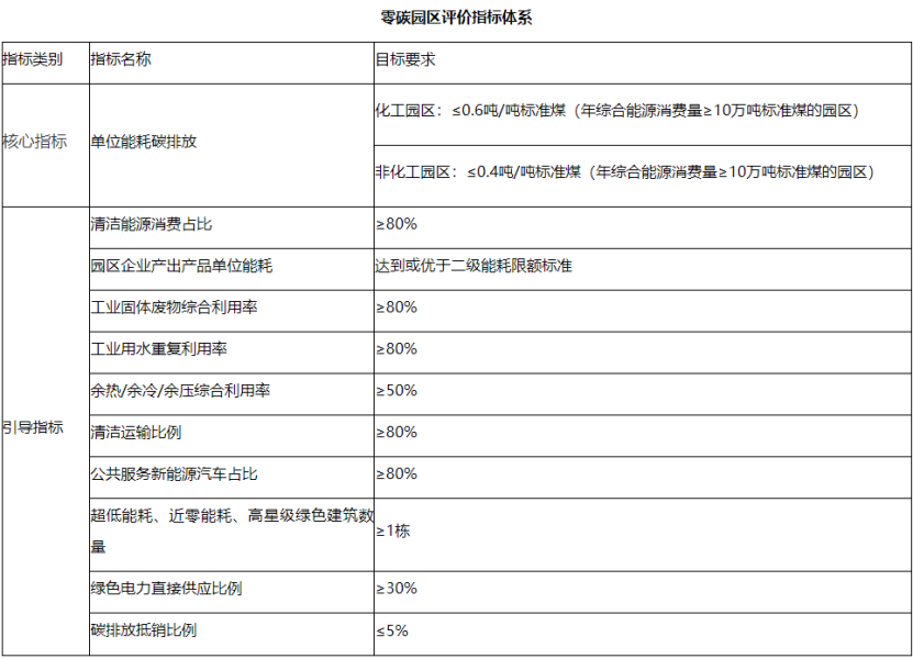 核心指標:零碳園區建設必須達到的目標,是園區驗收評估的首要條件。達不到核心指標要求的園區,原則上不得申請驗收。