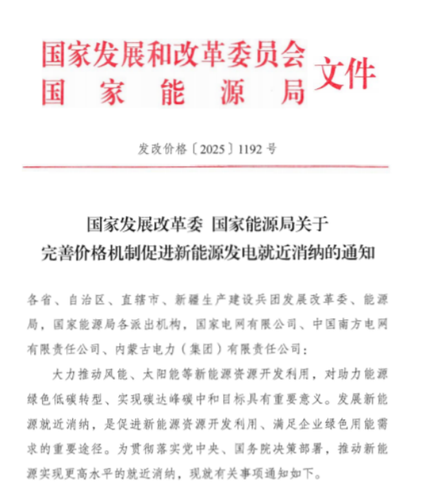 關(guān)于公開(kāi)征求《關(guān)于貫徹發(fā)改價(jià)格〔2025〕1192號(hào)文件進(jìn)一步明確新能源就近消納價(jià)格政策有關(guān)事項(xiàng)的通知(征求意見(jiàn)函)》意見(jiàn)建議的公告