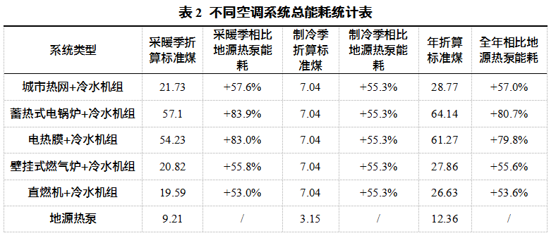 2)不同空調系統總能耗統計對比