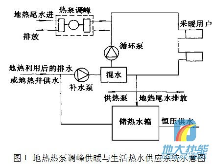 以往計(jì)算分析說明[:地?zé)?a href="http://m.pingtaibi.cn/t/熱泵供暖.html" >熱泵供暖系統(tǒng),以地?zé)峒?a href="http://m.pingtaibi.cn/t/熱泵.html" >熱泵調(diào)峰供暖方式的供暖成本和投 圖1地?zé)?a href="http://m.pingtaibi.cn/t/熱泵.html" >熱泵調(diào)峰供暖與生活熱水供應(yīng)系統(tǒng)示意圖資低于熱泵單獨(dú)作熱源的供暖方式。