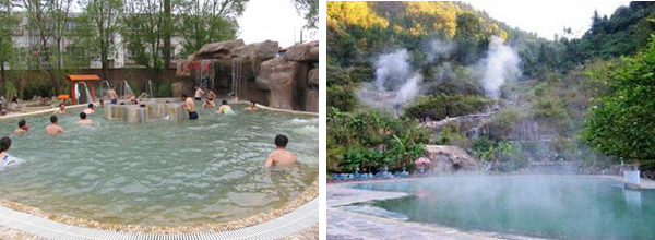 熱水溫泉地處老圖山脈東緣山麓,分布面積為0.42平公里,日最大可采儲(chǔ)量1800~2100噸,中心孔深503米,自流水溫高達(dá)當(dāng)?shù)胤悬c(diǎn)97℃,是全國水溫最高的溫泉之一。泉水中含有碳酸氯鈉、硫化氫、二氧化硅、氡、氟、碘、硼、銅、銀、鉀、鈦、鈄、鎂、鋰、鈣等卜幾種化學(xué)物質(zhì)及微量元素,對(duì)神經(jīng)衰弱、高血壓、糖尿病、皮膚病、胃病、布氏桿菌癇、多發(fā)性神經(jīng)炎、增生性脊柱炎、氣管炎等30多種常見疾病有很好的療效和較強(qiáng)的保健作用。
